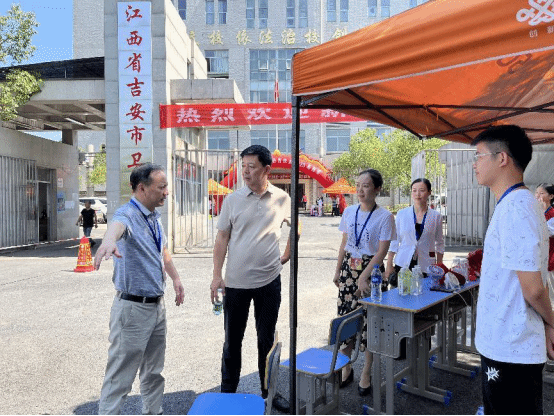 井冈山大学党委常委、副校长李军莅临迎新现场指导工作,吉安卫校党委书记王静、校长胡煜辉、党委副书记雷蕾的陪同。