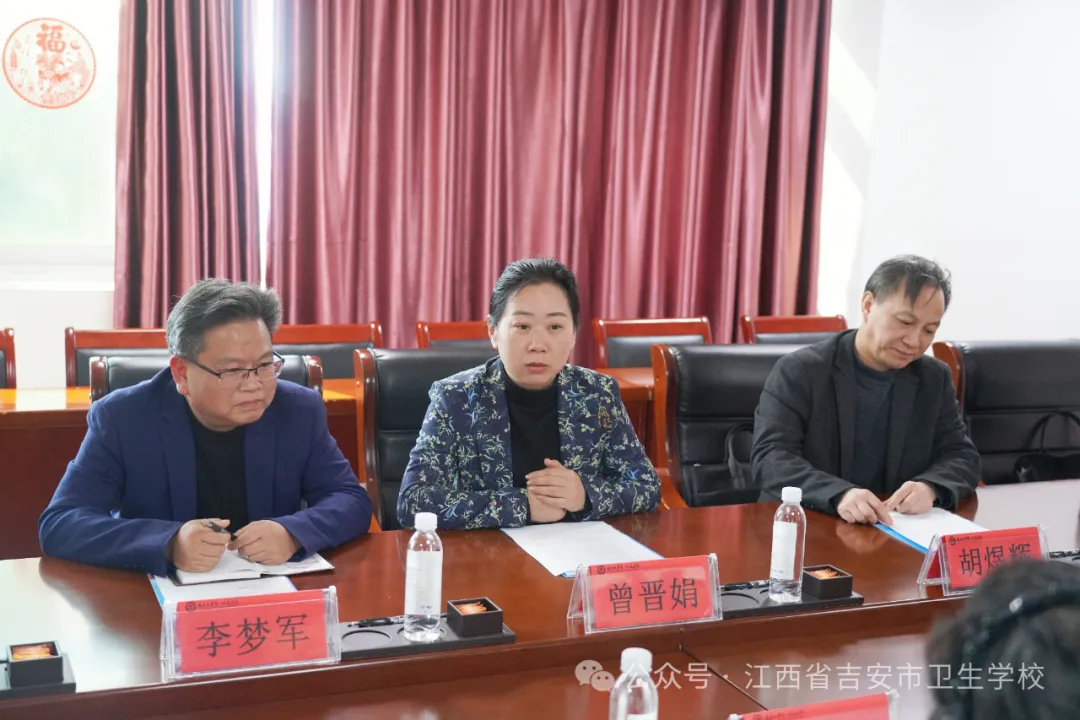 曾晋娟对南昌大学第一附属医院的热情接待和无私分享表示衷心感谢,全面介绍了吉安卫校的发展现状、专业建设特色、人才培养目标及当前在育人工作中面临的需求与困惑。她表示,吉安卫校始终以培育合格卫生专业人才为核心,此次专程赴昌大一附院学习交流,既是对标先进、补齐短板,更是恳请医院在人才培养、实习实训、师资提升等方面给予指导和助力,推动学校办学育人水平再上新台阶。