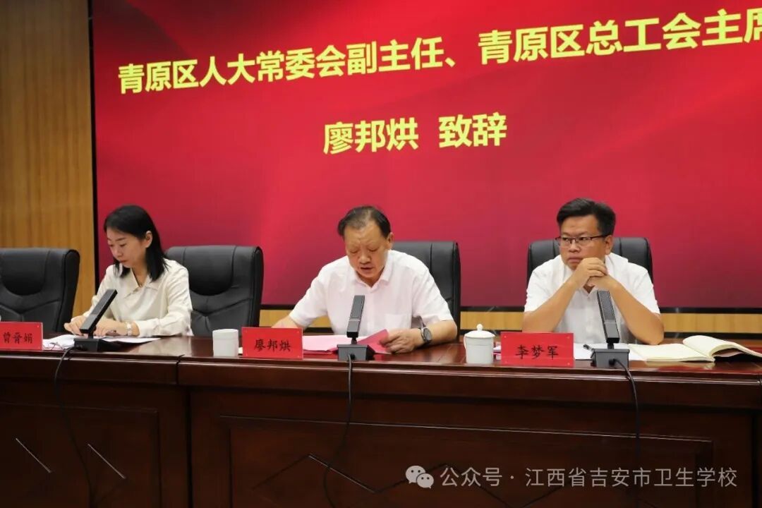 9月21日上午,江西省吉安市卫生学校全体教职工会议暨第一次工会会员大会在学校报告厅胜利召开。校党委书记曾晋娟出席并讲话,校长胡煜辉主持会议。青原区人大常委会副主任、青原区总工会主席廖邦烘到会指导并致辞。学校党政领导班子和全体教职工工会会员参会。