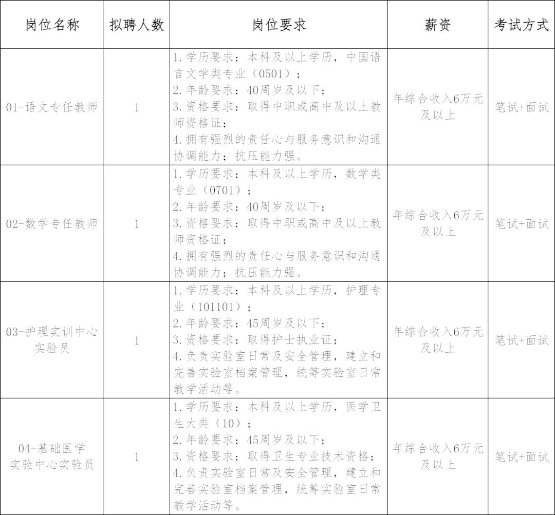 详见附件1《2026年吉安市卫生学校招聘岗位及任职要求》。本次招聘岗位年龄计算方法为:40周岁及以下是指1985年2月1日(含)以后出生,其他年龄计算方式依此类推。招聘岗位要求毕业证书或资格证书获取的时间截至2026年2月1日(含)。特别优秀者经研究决定后可适当放宽相关条件。