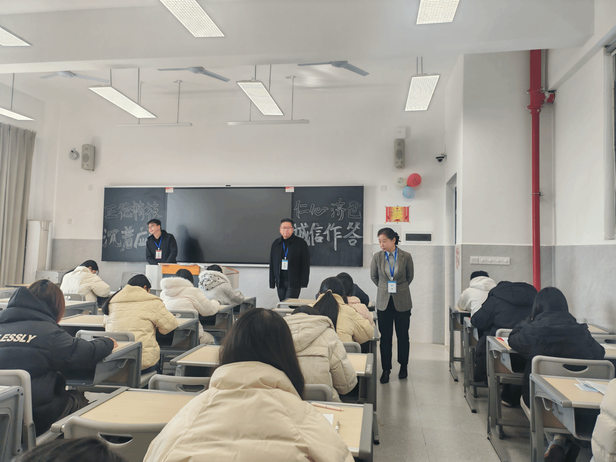 曾晋娟书记强调,考试工作是教学管理的重要环节,全体教职工要高度重视,严格执行考试制度;监考人员须认真履责,维护考场纪律;各部门要加强协作,确保考试平稳有序。她同时指出,要持续加强诚信教育,引导学生端正考风、诚信应考。