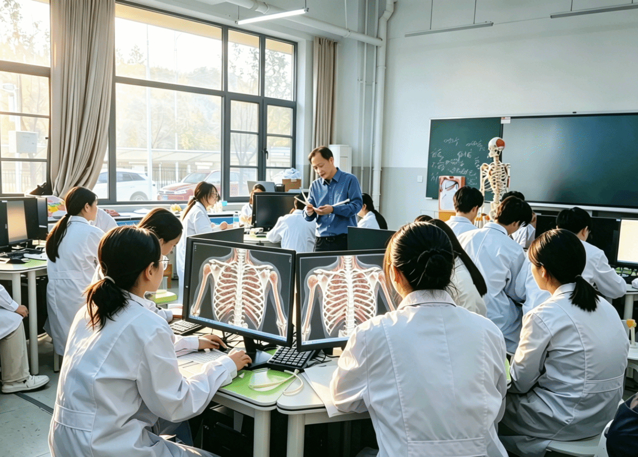 胡煜辉校长带头讲授解剖实训课程,教学过程规范严谨,聚焦解剖模型精细讲解,通过直观示教、细致拆解,将人体结构知识与模型辨识有机结合,充分展现了扎实的教学功底。