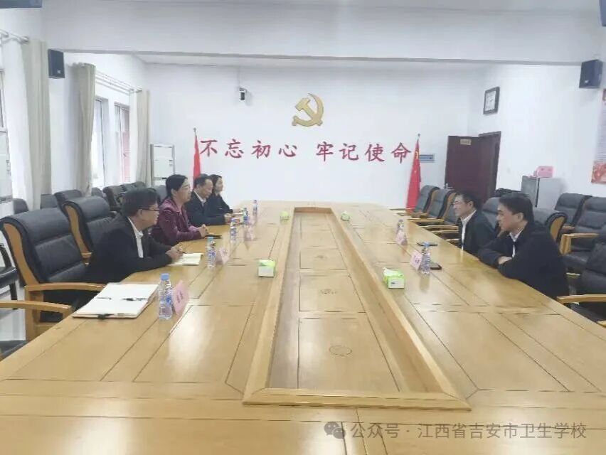近日,吉安卫校党委书记曾晋娟、校长胡煜辉带领班子成员及相关教师赴吉安市中心医院开展交流活动,旨在进一步深化产教融合,搭建院校合作新桥梁。