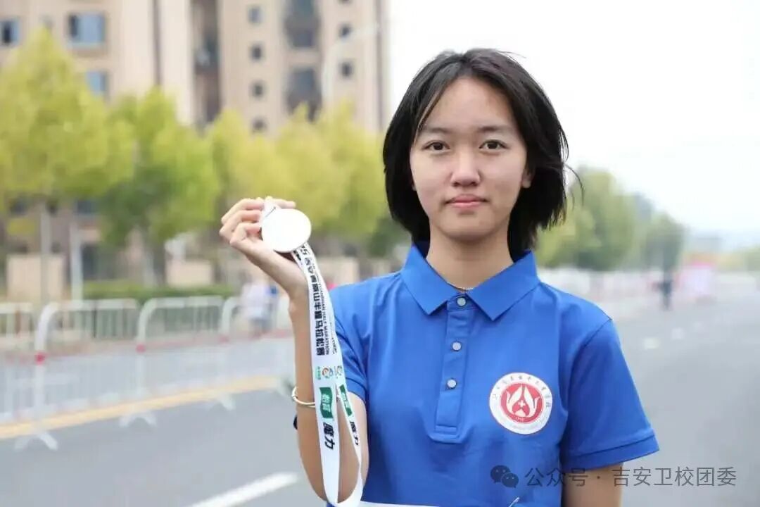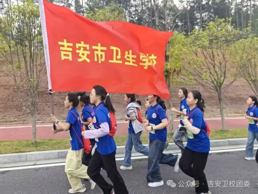 吉安卫校学子们身着统一服装,热情洋溢地奔跑在赛道上,他们作为青春的代言人,以独特的风采和坚韧的意志,在健康跑赛道上尽情展现着青春的活力与创造力,为赛事增添了浓厚的青春气息。