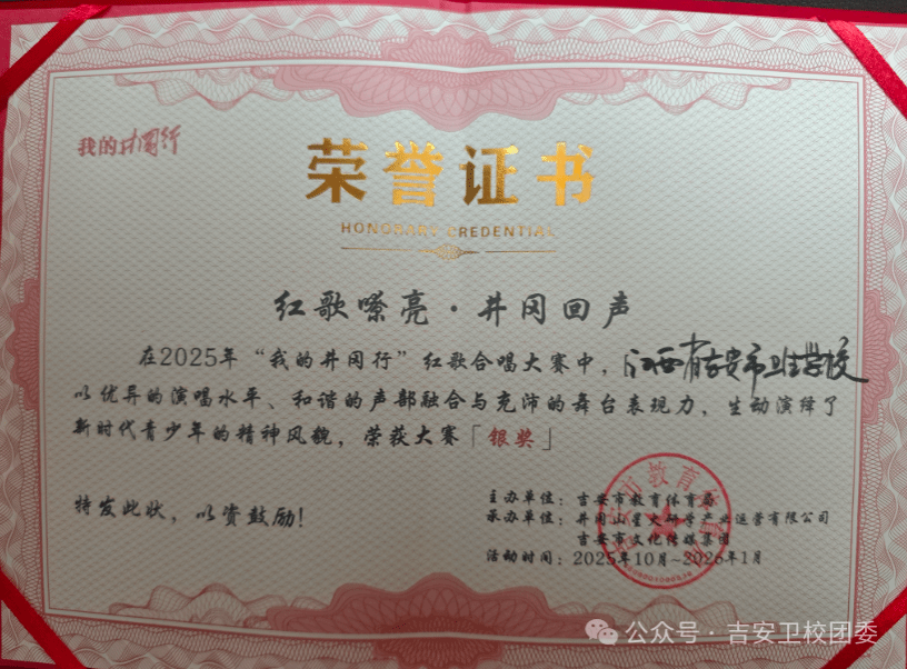 我校合唱团凭借扎实的演唱功底、和谐的声部融合与饱满的精神面貌,在众多参赛队伍中脱颖而出。舞台上,同学们身着盛装,以一首《如愿》深情演绎,用嘹亮的歌声传递对革命先辈的敬意,展现了新时代卫校学子的家国情怀与青春风采。从排练到登台,指导老师与全体队员凝心聚力、反复打磨,最终收获了大赛银奖!