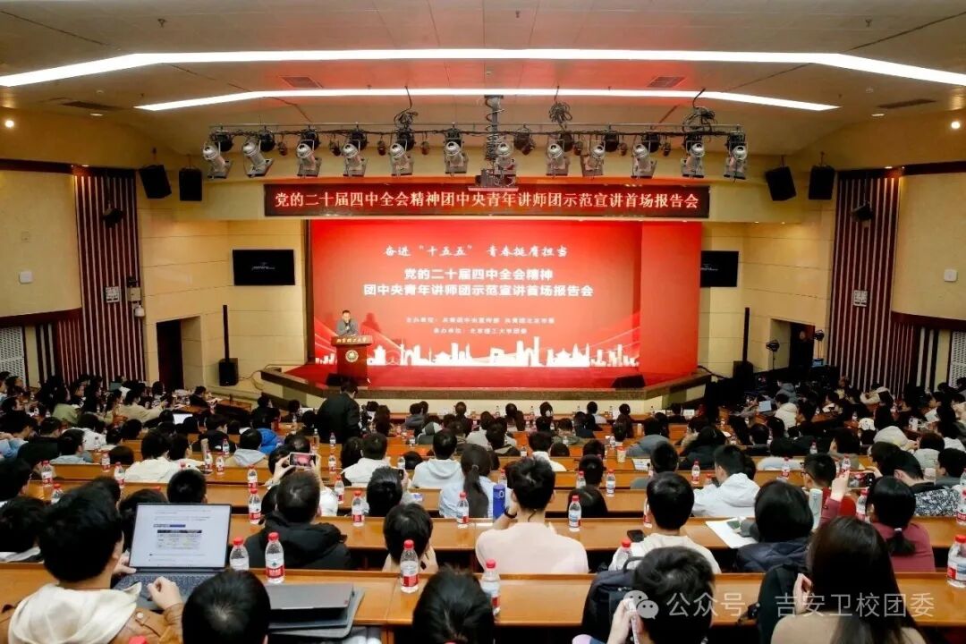 11月18日上午,共青团中央在北京理工大学举行青年讲师团首场示范宣讲报告会,宣讲党的二十届四中全会精神。报告会紧紧围绕习近平总书记重要讲话和全会有关文件,引导青年深入学习、系统领会全会精神,深刻领悟“两个确立”的决定性意义,坚决做到“两个维护”,把思想和行动统一到全会精神上来,奋进“十五五”、建功新征程,奋力书写为中国式现代化挺膺担当的青春篇章。