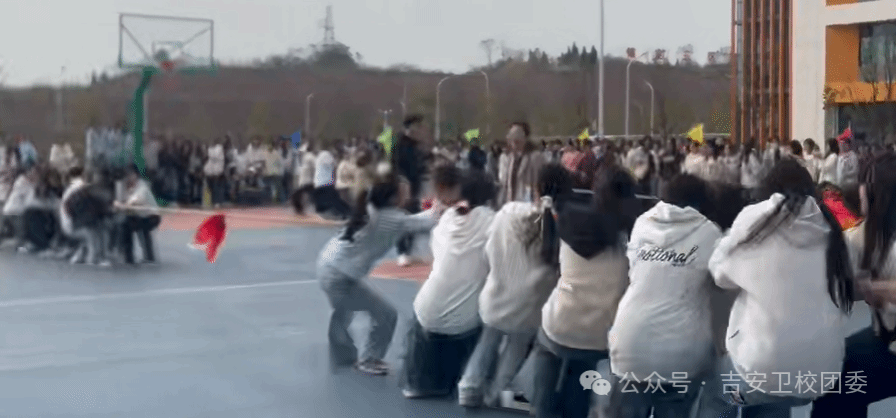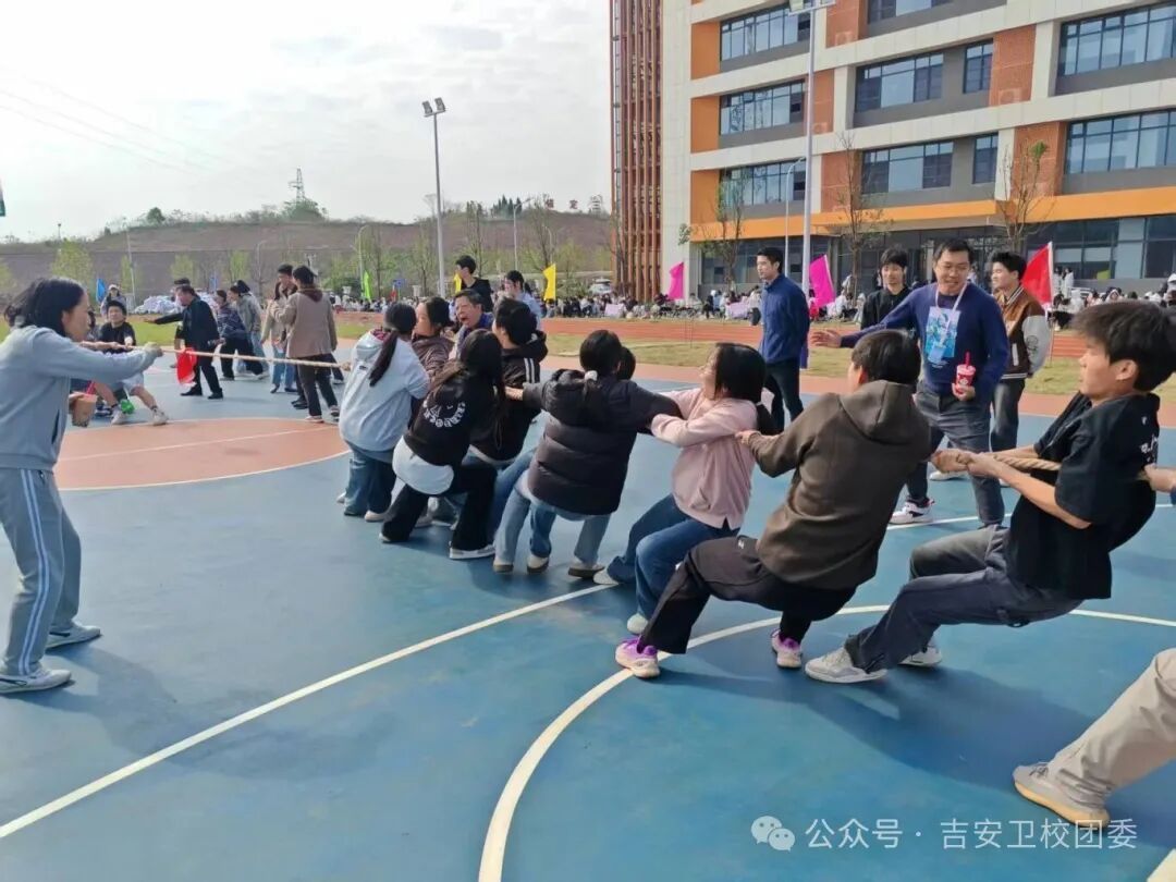 "一根绳子,凝聚全班力量;一声号子,喊出必胜决心。同学们齐心协力,为了共同目标拼搏!"