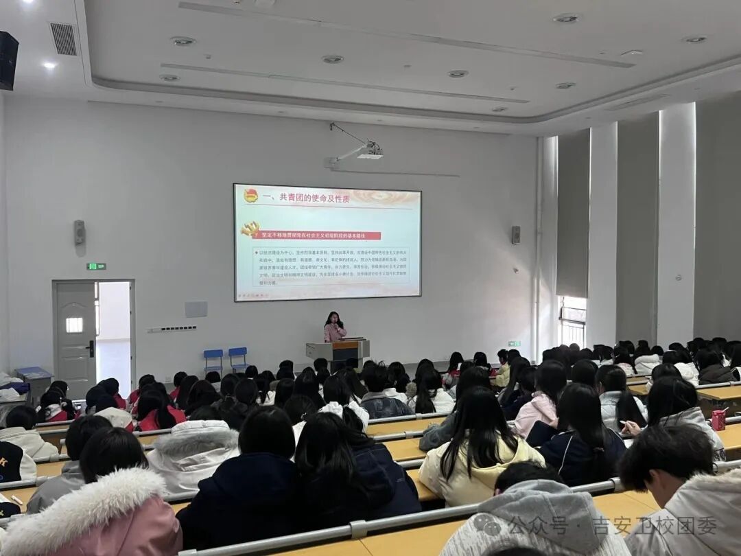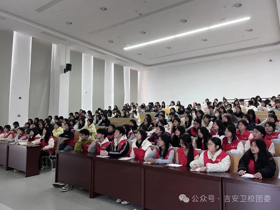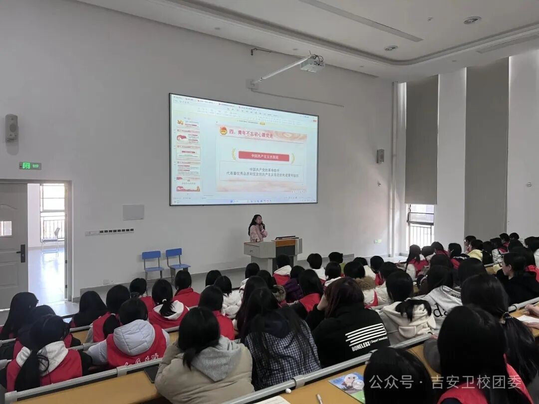 为加强对入团积极分子思想引领,推动团史学习教育走深走实,引导卫校学子坚定理想信念、勇担时代使命。3月13日下午,校团委面向24级、25级全体团员及红医先锋班学员们开展主题团课。本次团课由团委书记梁易露、王弯老师主讲,引导卫校学子坚定信念、勇担使命,以青春奋斗践行团员初心。