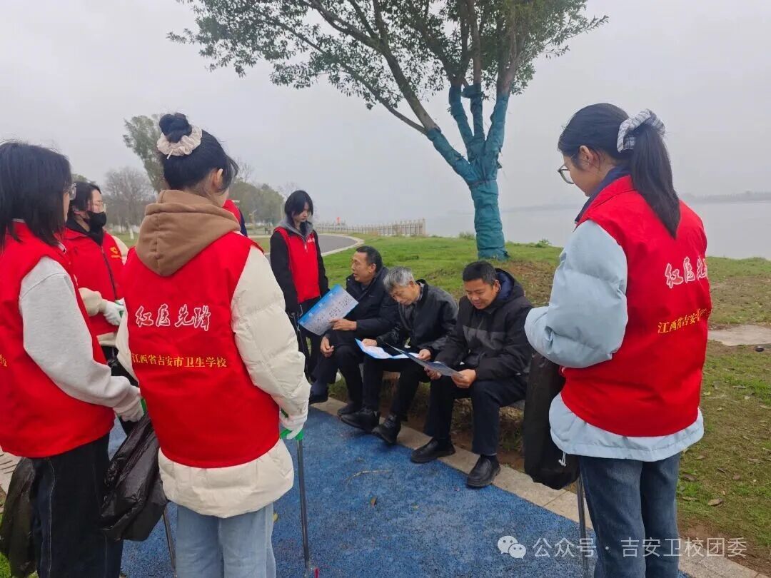 我校红医先锋班部分志愿者在团委书记梁易露的带领下,走进河长制公园,开展志愿服务活动,将温暖从校园延伸到社会。共青团吉安市委联合市青志联、吉安市卫生学校、团吉州区委、庐陵新区消防救援大队,共同开展“保护母亲河 争当‘河小青’——学雷锋志愿服务活动,以实际行动守护一江碧水,书写新时代雷锋故事。 活动现场,志愿者们身着志愿马甲,手持清洁工具,沿着赣江吉安段沿岸开展垃圾清理、环保宣传等志愿服务,以实际行动践行“绿水青山就是金山银山”的理念。