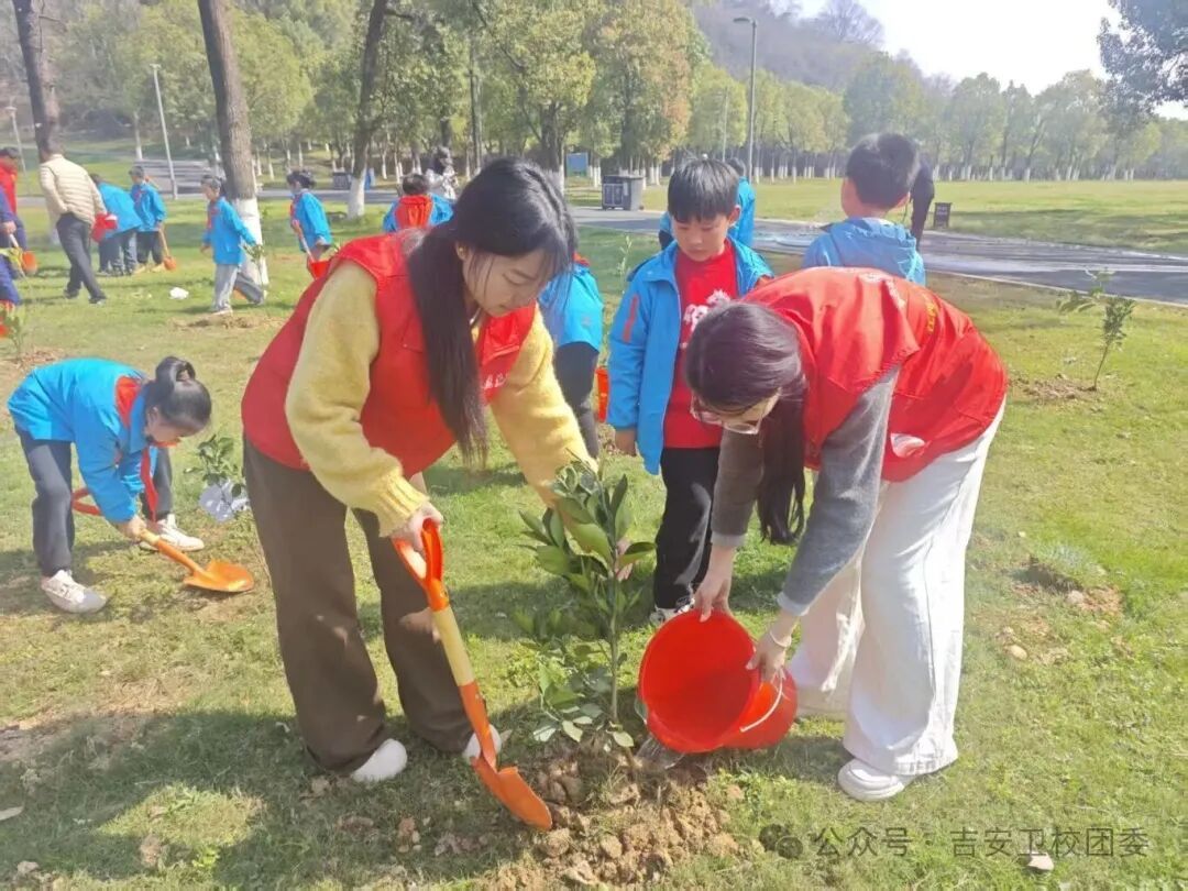 现场植树环节,同学们耐心挖土、扶苗、培土、浇水,细致了解树苗养护要点,在劳动中增长知识、体验乐趣。大家分工协作、配合默契,齐心协力将一株株树苗整齐植入坑中。迎风挺立的树苗,不仅为土地注入新生绿意,更在同学们心中播下热爱自然、珍惜环境的美好种子。