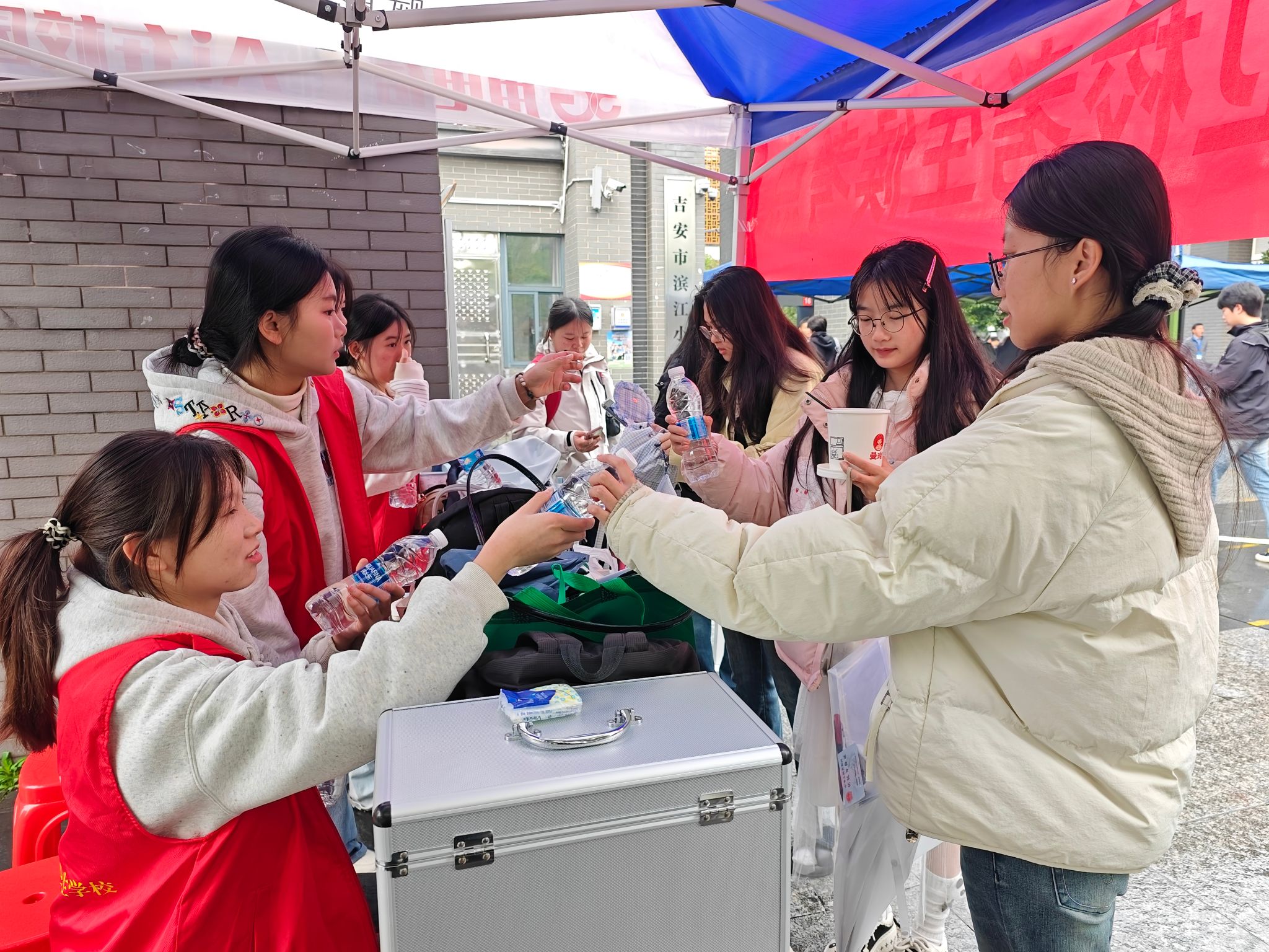 一抹志愿红,温暖赶考路。我校学生志愿者主动上岗,贴心提供指引服务、帮忙存放个人物品、备好应急药品、传递温暖鼓励。他们用热情服务驱散雨天寒意,以青春力量助力学长学姐从容应考,让守护更有温度。