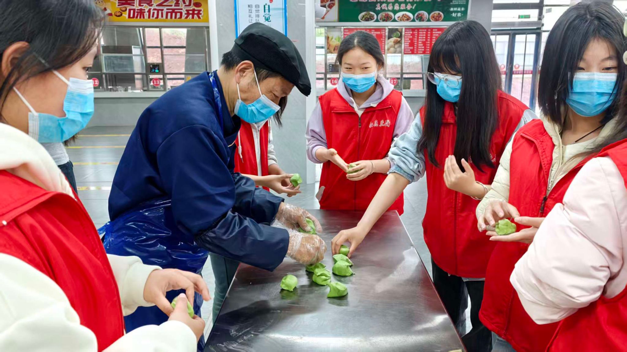 制作艾米果工序简洁却饱含巧思。大家围坐协作,相互配合,将鲜嫩艾草与糯米粉充分糅合,包入各式馅料,一个个翠绿饱满的艾米果逐渐成型。整个过程既锻炼了动手实践能力,也在协作配合中增进了交流、凝聚了合力,更让学子在实操中体会劳动的乐趣,树立正确的劳动观念。蒸制完成后,清香四溢的艾米果色泽鲜亮、软糯可口,既是春日的时令滋味,也是劳动带来的真切收获。